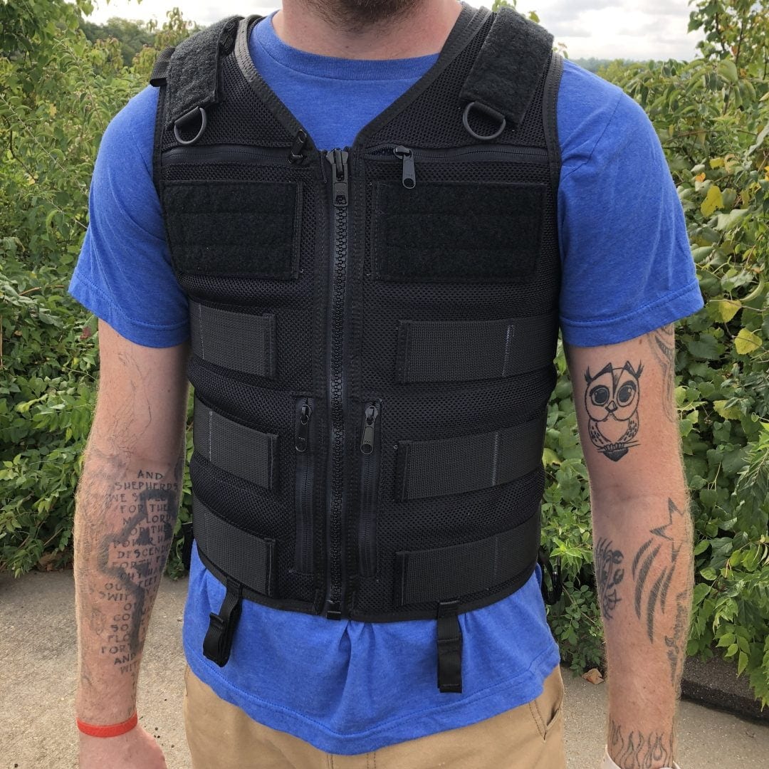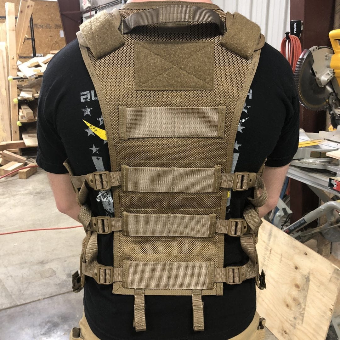 - Adjustable shoulders with loop for attaching hook patches and panels