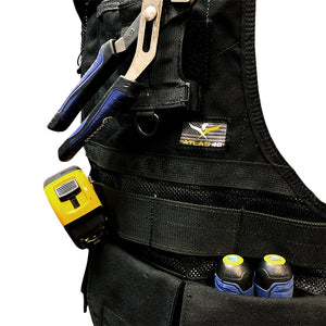 We are proud to introduce our greatest designed tool chest rig yet, the JourneyMESH Chest Rig with Cargo Pockets v2. Featuring all uniquely designed swivel buckles, larger pocket design, better expand ability, 3 point shoulder pad system, more mid section flex, expanded front pocket design, new reversible?bear claw cargo pockets?, seamless music cord button hole and much more. The waist strap is 21". If you need a larger waist strap, check out the Journeyman Chest Rig Belt Extension.