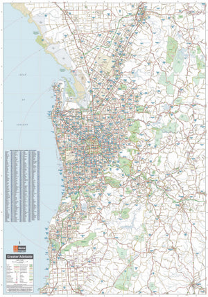 • Primary Map of Greater Adelaide at a scale of 1:80,000 which features Adelaide and surrounding regions (including the Barossa Valley, Adelaide Hills & McClaren Vale) as well as major highways, 24-hour fuel stops and other points of interest