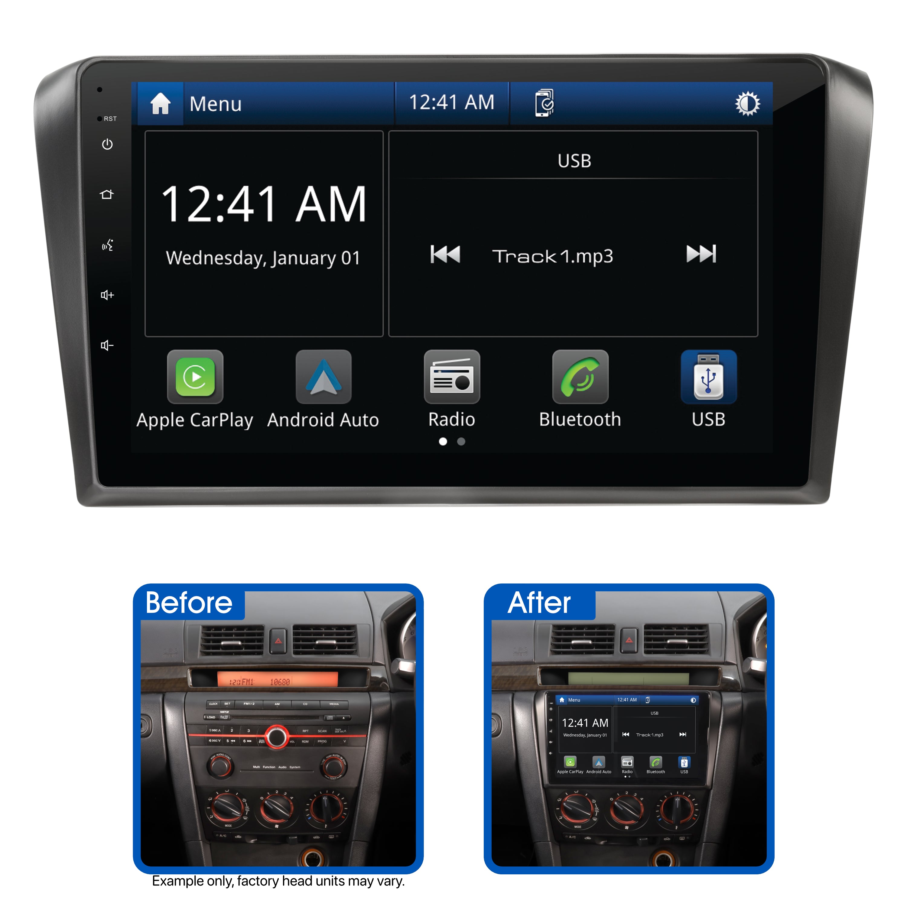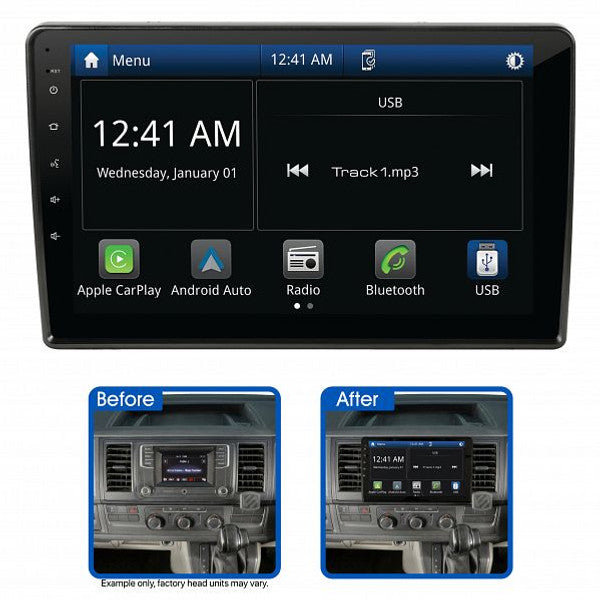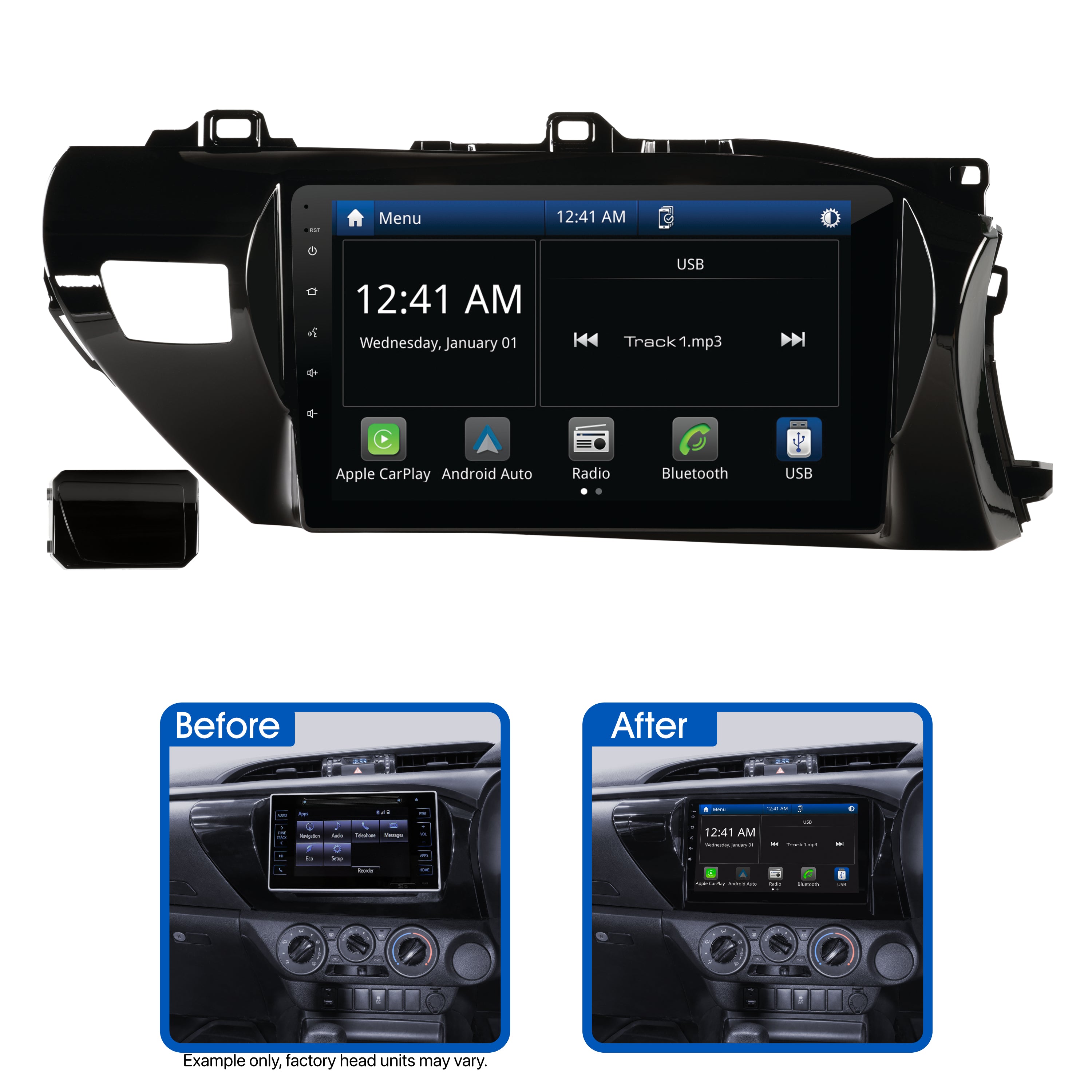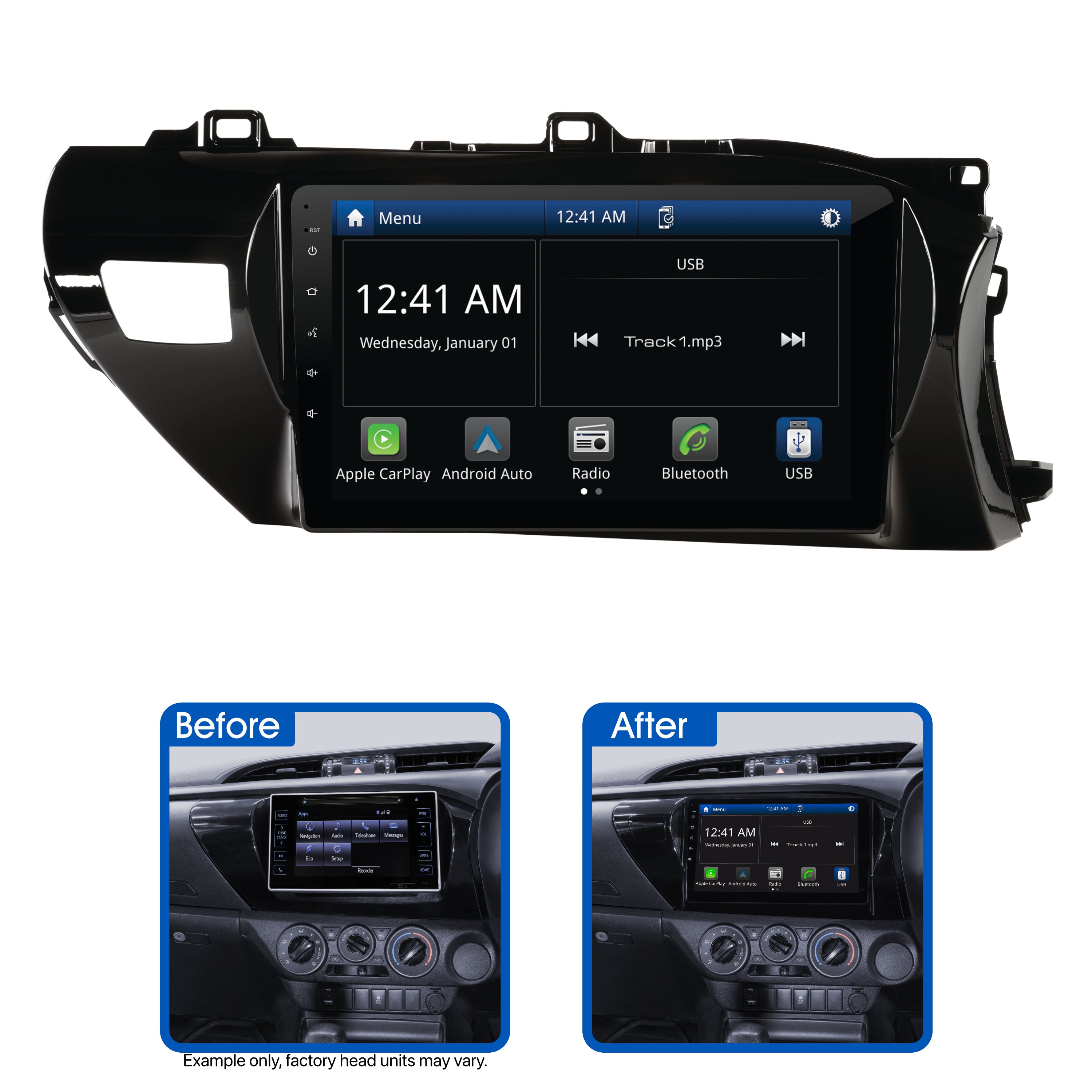 Available in 35 different vehicle makes and models (including popular models such as Ford Ranger, Isuzu D-Max, Mazda BT-50, Nissan Patrol and Totoya Landcruisers) this is a great option to get your vehicle Apple Carplay/Android Auto functionality in a nine-inch or ten-inch screen.