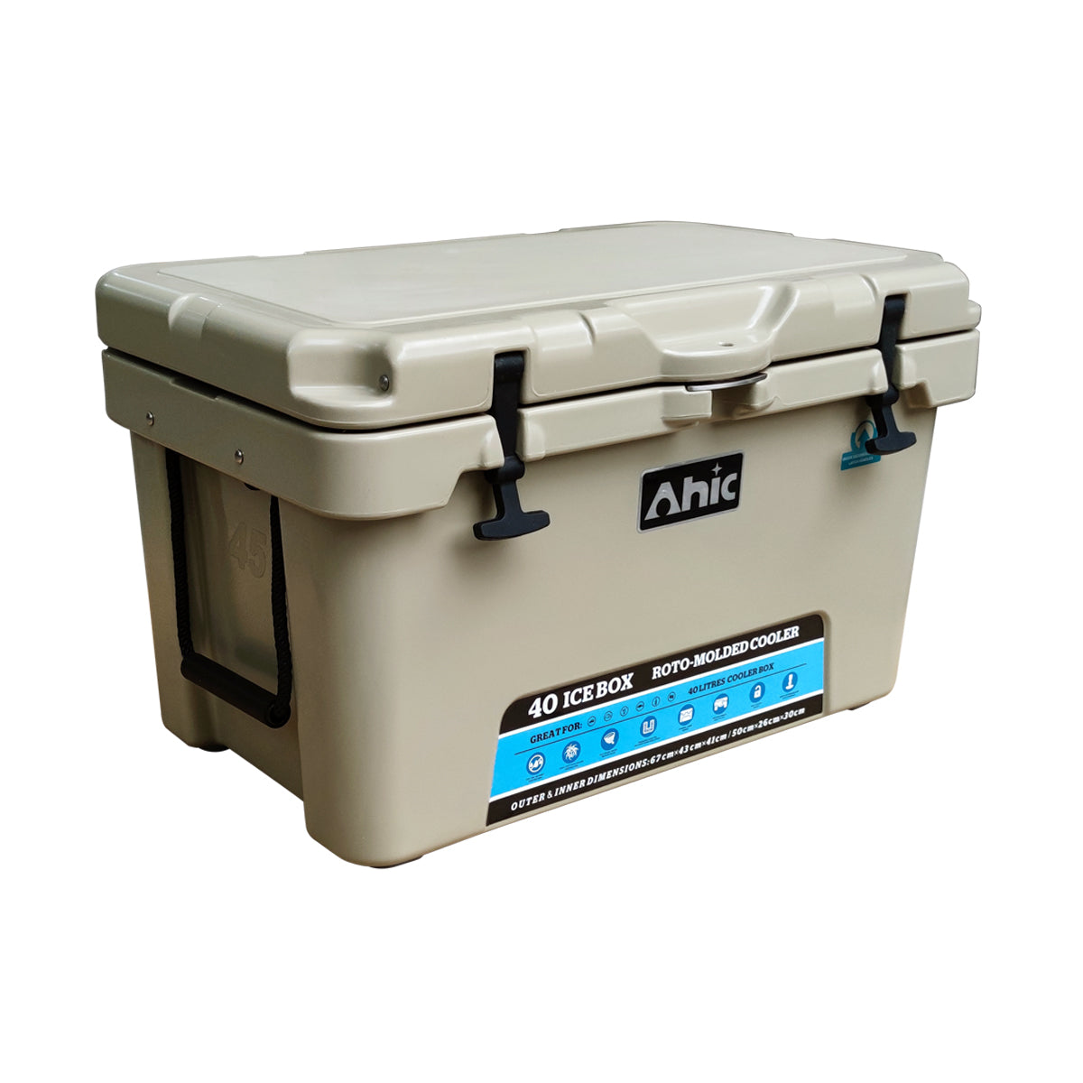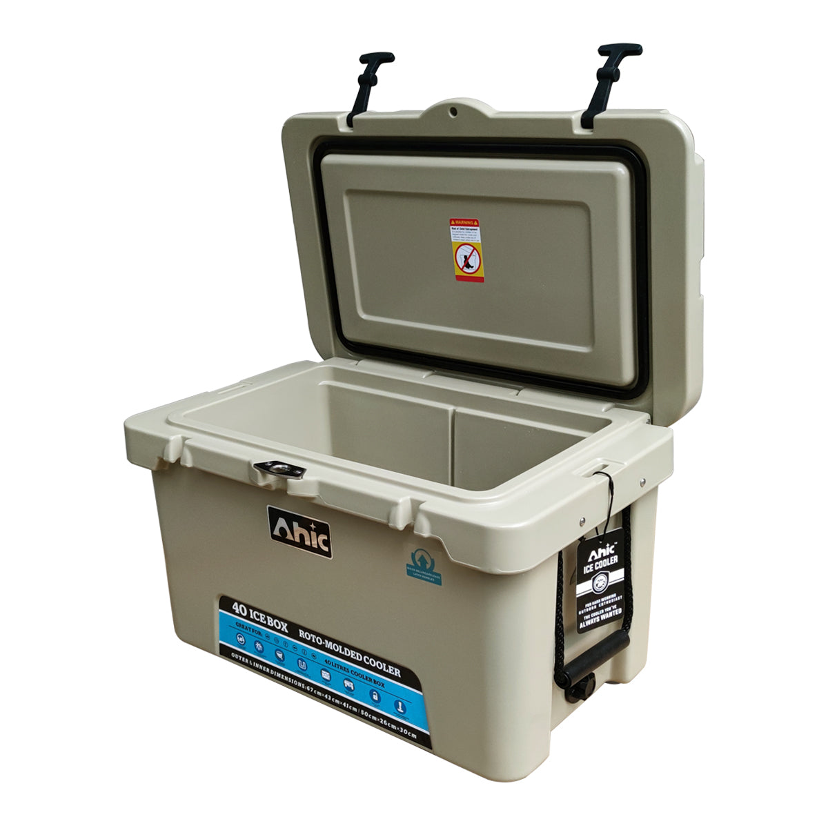 There are coolers and there are AHIC coolers. And the AHIC EH45 cooler is designed to handle any extremes that mother nature and man can throw at it. From its virtually indestructible environmentally-friendly roto-moulded polyethylene LLDPE construction to extra-thick walls packed with polyurethane foam insulation, our cooler also features an airtight lid gasket, strong nylon-rope lifting handles, flexible heavy-duty silicone T-latches, built-in lock mount and an integrated hinge system for secured handling at all times. On the road, adventure camps, outdoor activities or just a backyard barbeque, our premium 40-litre cooler will do nicely to keep your ice cubes, drinks (up to 42 cans) and food fresh and cool for as long as you intended them to be with its sealed, airtight lid. And it gets even better as this tough cooler has a built-in stainless steel bottle opener and can also double as a non-slip seat, step stool, tabletop or even cutting board for extra functionality. Truly, the AHIC cooler is the stuff of legends.