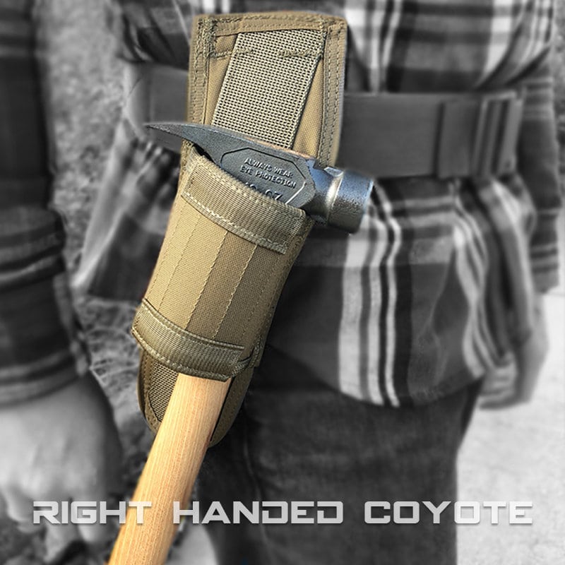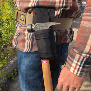 The superior angled design of the AIMS™ Hammer Hold positions your hammer to where it feel like an extension of your body. Conventional metal hammer loops force you to draw your hammer straight up. The AIMS™ Hammer Hold angles your hammer at 10 degrees for a smoother draw as well as avoiding contact with your legs. The elongated body keeps your hammer from a wide range of motion, protecting you and your work from unintentional damage. The .050 rigid plastic inside the Hammer Hold will maintain it's shape under the harshest conditions. Made out of a heavy duty 1000D Cordura, it is not just built for comfort, it’s built to last a lifetime. It is offered in both left and right hand for preferential carry. Put it on any AIMS™ platform or any standard belt 2” or less. Nail it every time with the AIMS™ Hammer Hold!