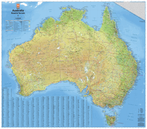 Australia Road and Terrain Wall Map