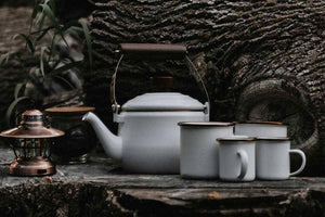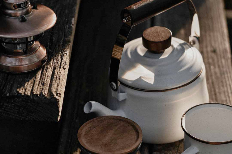 A beautiful statement piece for your camp kit or home kitchen. Ideal for quickly heating water for camp coffee, tea, hot chocolate, and more. The Teapot features a hand-finished, baked stainless steel trim that creates a copper-like patina finish and matches our full enamelware line.