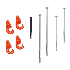 - Hold the hook and guy rope in one hand, place drill in reverse and screw out.