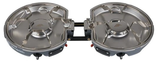 Turn your outback cooking fantasies into reality with the ultra-compact Genesis dual-burner cook stove. A beastly 10,000 BTU heating system boils water in just over three minutes. The Genesis is designed specifically for Jetboil's versatile line of cookware, including the Jetboil FryPan, 5L FluxPot, and more. An attachable windscreen improves the system's performance in any weather; the efficient, compact folding design fits handily in small spaces. Includes system carrying bag with pocket for regulator fuel connection; compatible with standard 16.4-ounce propane bottle; weighs 2.8 kg.