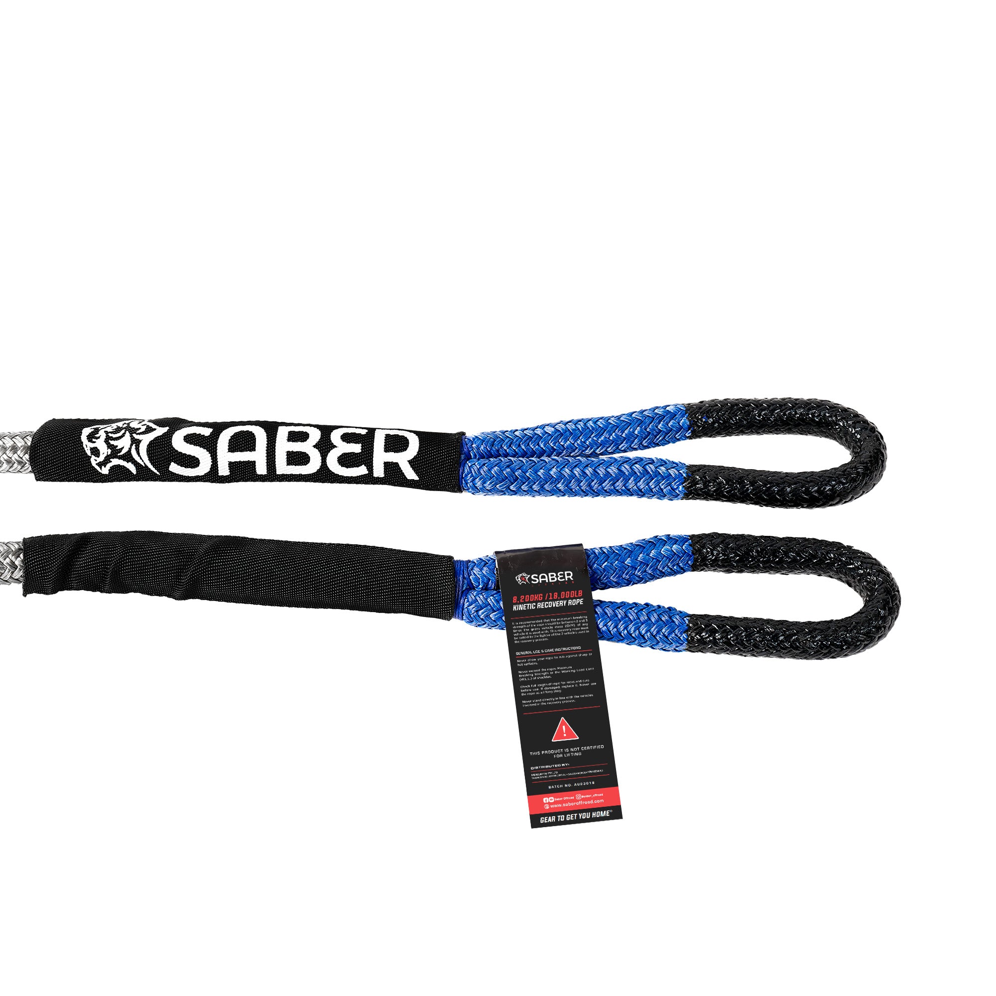 - Flexible and heavy-duty Nylon 66 material: Constructed using the highest quality Nylon 66 material and featuring a unique outer treatment, the Saber Offroad Kinetic Recovery Rope is protected against UV damage, moisture, and abrasive elements like dirt and sand.