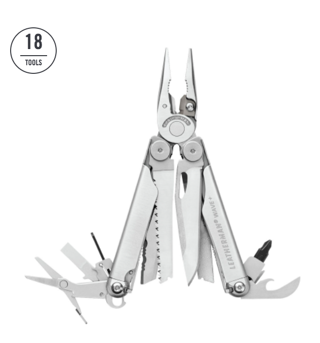 An international best-seller, the Wave Plus has all the essential tools of the original with the addition of replaceable, durable wire cutters. All 18 tools can be opened and locked with one hand to quickly, conveniently tackle any task. Many of these tools are outside-accessible, so you can use them when the multi-tool is folded and closed.