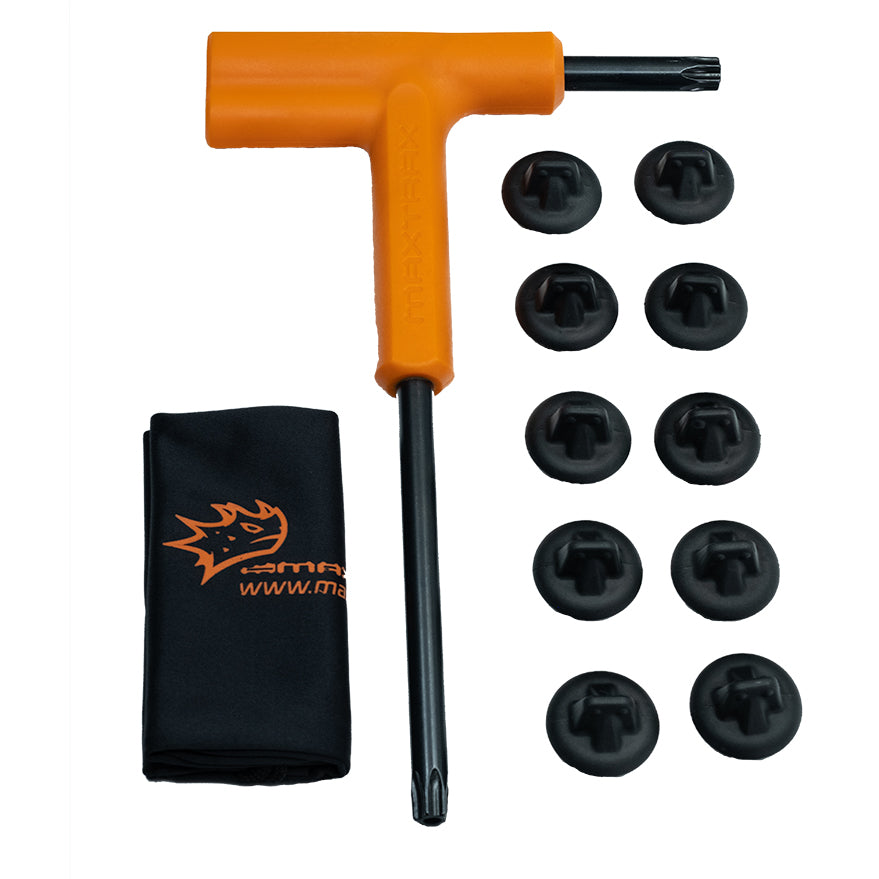 The MAXTRAX XTREME TEEH REPLACEMENT KIT includes 10 anodised alloy teeth to suit MAXTRAX X Series 4WD Recovery Tracks (not compatible with MAXTRAX MKII), plus a MAXTRAX XTRACT INSERT TOOL and a soft bag to store the replacement teeth. All the teeth on the MAXTRAX X Series 4WD Recovery Tracks are the same shape and size, so you can replace any damaged tooth with any of these replacement teeth; a quick and easy task using MAXTRAX XTRACT INSERT TOOL.
