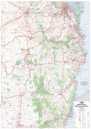A regional map of North East New South Wales (1:375,000) that is the perfect companion for touring through North East New South Wales (NSW). The map features information on the major touring routes through the region including the Summerland Way, Bruxner Highway, Waterfall Way and Gwydir Highway, as well as major tourist attractions along both the Pacific Highway and the New England Highway. Also included are listed national parks within the region, contact information and events.