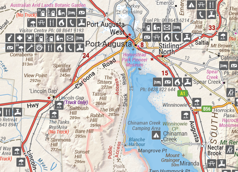 This map is part of Hema's new Nullarbor Plain Map Series (East and West) and covers Border Village to Port Pirie including the Eyre Peninsula.