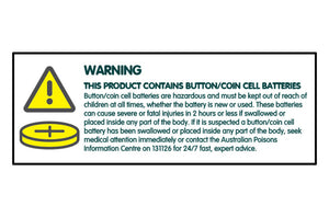 WARNING – KEEP BUTTON BATTERIES OUT OF REACH OF CHILDREN