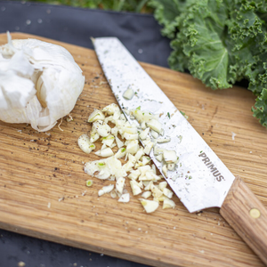 Chef knife with flexible stainless-steel blade and oak handle. Designed for excellent slicing, chopping and dicing. The flexible blade also makes it good for filleting.