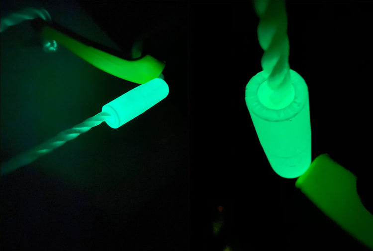 Tripping over guy ropes at night is a regular occurrence when camping. Our product will help eliminate this problem. They are rechargeable and can glow up to 8 hours (depending on the ambient light available). Just slide it onto the rope and position on the peg or above the rope runner.