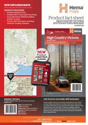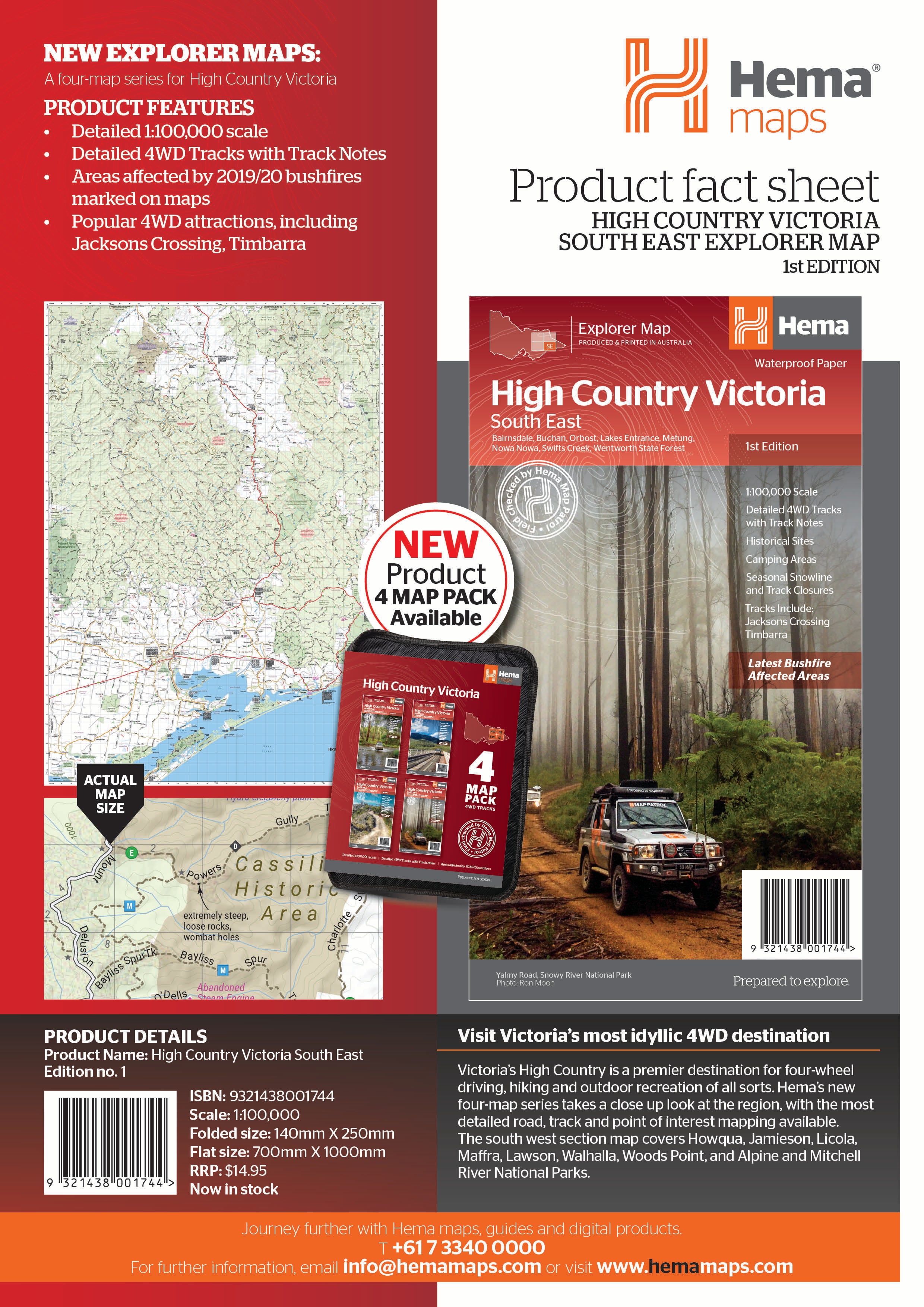 This map is part of Hema's new Victorian High Country Map Series and covers the Southern Lowlands and Lakes Areas. It overlooks Gippsland, Howqua, Jamieson, Licola, Maffra, Lawson, Walhalla, Woods Point and Alpine, Snowy River and Mitchell National Parks. Printed on durable waterproof paper, this map features Hema's iconic mapping and extensive points of interest.