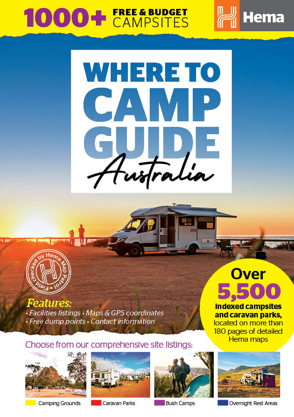 Prepare for your next adventure with the Where To Camp Guide from Hema, Australia’s premier producer of off-road and touring maps and guides. Travellers can browse comprehensive site listings across all states and territories, or select sites along their path using detailed Hema maps. Listings are categorised as camping grounds, caravan parks, bush camps and overnight rest areas, making it easy to find the perfect destination, while an intuitive design ensures stress-free trip planning.